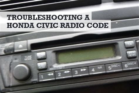 Honda Civic Stereo Code. I removed the battery in my 06 honda civic, after i put the battery back my radio/stereo. Turn the radio on and you should.